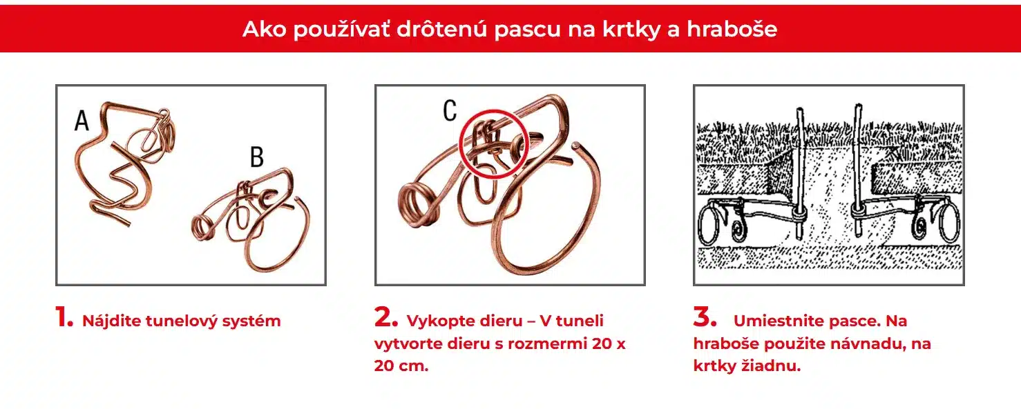 Rozmery: vhodné na bežné nory krtkov a hrabošov