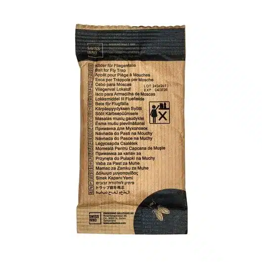 Táto návnada je určená na doplnenie SWISSINNO® pasce na muchy. Vďaka nej si môžete jednoducho obnoviť účinnosť pasce a zabezpečiť spoľahlivý odchyt múch vo vašej záhrade, na terase či dvore.